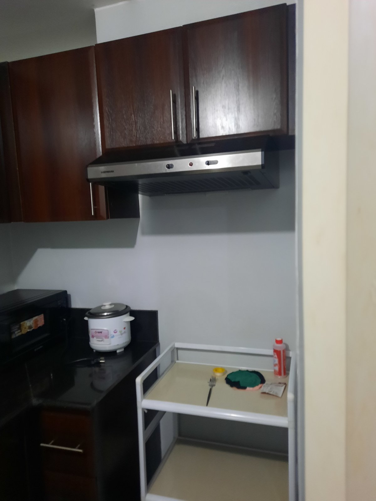 Unit is semi-furnished with split type aircon in living room and window type aircon in bedrooms; toilets have water heater; unit has mini sala; kitchen is equipped with Refrigerator, Microwave, Induction Cooker, Range Hood, Rice Cooker, Electric Water Kettle; Utility Room equipped with Automatic Washing Machine.