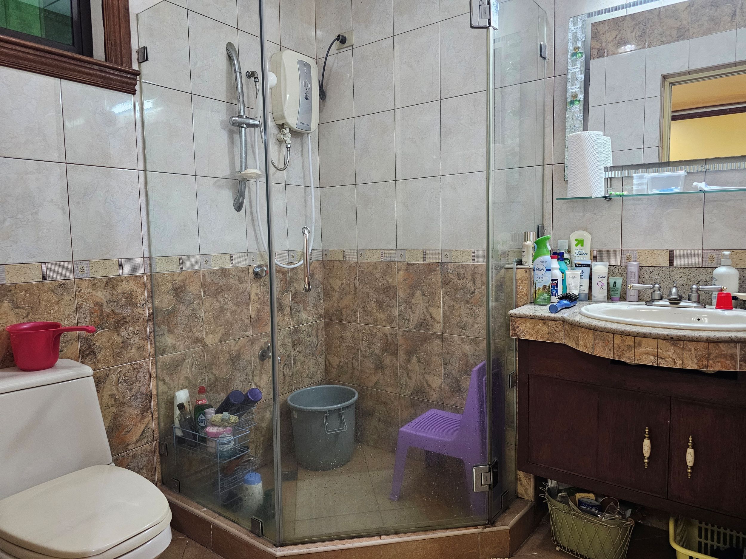 Located in a flood free area, this 10-year old house is well maintained. Built with elderly people in mind, it has a bedroom on the ground floor, lots of open spaces for gardening plus a wide area for entertaining on the 2nd floor. It also has a room for the driver with its own T&B.